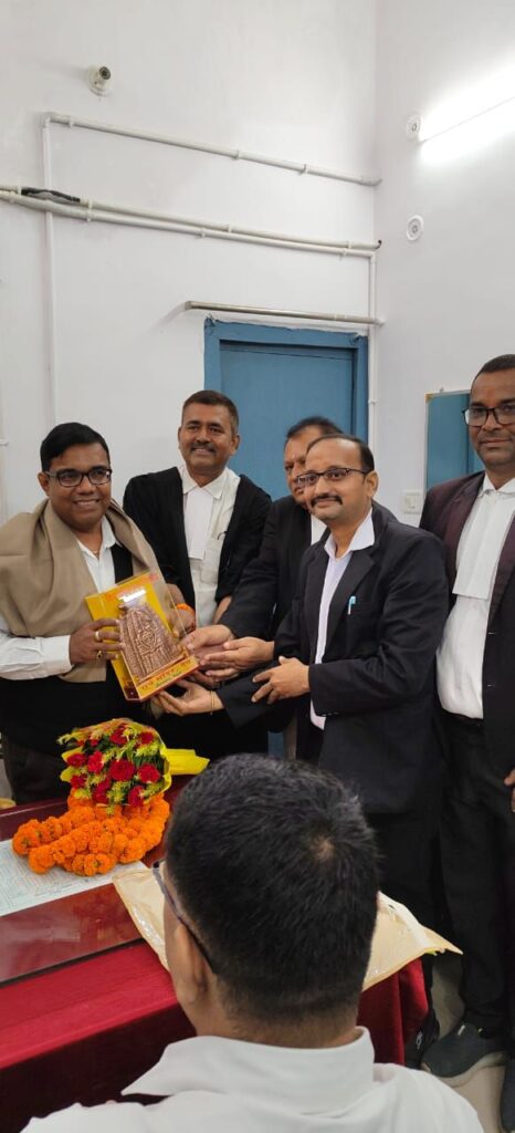 2023 से प्राप्त हुआ यहां बार और बेंच के मधुर तालमेल से अच्छी तादाद में वाद निष्पादन सुलभ हुआ यह तालमेल आगे भी जारी रखें और अधिक से अधिक मुवक्किलों को लाभ दिलाने का प्रयास करें, कार्यक्रम में सर्वप्रथम जिला विधिज्ञ संघ औरंगाबाद के अध्यक्ष विजय कुमार पाण्डेय महासचिव जगनरायण सिंह, अधिवक्ता संघ अध्यक्ष संजय कुमार सिंह ने साल बुके मेमेटो माला देकर सम्मानित किया और उनके उज्ज्वल भविष्य के कामना करते हुए पुनः औरंगाबाद न्यायिक सेवा में आने का आग्रह किया, अधिवक्ता सतीश कुमार स्नेही ने बताया कि न्यायधीश आनंद भूषण का स्थानांतरण न्यायिक एकादमी पटना में उपनिदेशक पद पर हुई है, विदाई समारोह में न्यायधीश विश्व विभूति गुप्ता, उमेश प्रसाद, निशित दयाल, विवेक कुमार सिंह, मनीष जयसवाल,पंकज पांडेय, लाल बिहारी पासवान, एपीपी धर्मराज शर्मा, इरशाद आलम,सुरजमल शर्मा,अनील कुमार चतुर्वेदी, जिला विधिज्ञ संघ कार्यकारणी सदस्य प्रदीप कुमार,क्षीतीज रंजन, सुर्दशन यादव, दिलीप कुमार सिंह, सतीश कुमार स्नेही तथा अधिकांश न्यायिक कर्मचारी भी उपस्थित होकर विदाई दिये।