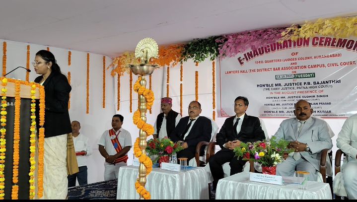 अध्यक्षता व्यवहार न्यायालय औरंगाबाद के प्रधान जिला जज सह जिला विधिक सेवा प्राधिकार औरंगाबाद के अध्यक्ष राजकुमार वन और मंच का संचालन जिला विधिक सेवा प्राधिकार औरंगाबाद के सचिव न्यायधीश तान्या पटेल ने किया, सर्वप्रथम दीप प्रज्वलित कार्यक्रम में प्रधान जिला जज राजकुमार वन, परिवार न्यायालय के प्रधान न्यायाधीश अरूण कुमार, जिला जज प्रथम विश्व विभूति गुप्ता, जिला विधिज्ञ संघ औरंगाबाद के अध्यक्ष विजय कुमार पाण्डेय महासचिव जगनरायण सिंह, अधिवक्ता संघ अध्यक्ष संजय कुमार सिंह ने किया, वर्चुअल उद्घाटन में मुख्य अतिथि पटना हाईकोर्ट के मुख्य न्यायधीश न्यायमूर्ति पवन कुमार भीमप्पा बजंथरी, न्यायमूर्ति सुधीर सिंह, न्यायमूर्ति राजीव रंजन प्रसाद और व्यवहार न्यायालय औरंगाबाद के निरीक्षी जज न्यायमूर्ति हरीश कुमार थे, सभी न्यायमूर्तियों ने वर्चुअल रूप से फीता काट कर दोनों भवनों का उद्घाटन किया और शुभकामनाएं देते हुए बधाई दी, मुख्य न्यायाधीश न्यायमूर्ति पवन कुमार भीमप्पा बजंथरी ने कहा कि औरंगाबादवासीयो को प्रणाम,यह सुनते ही उपस्थित सभी ने तालियां से स्वागत किया, न्यायमूर्ति ने पूर्व निरीक्षी जज न्यायमूर्ति राजीव राय और वर्तमान निरीक्षी जज न्यायमूर्ति हरीश कुमार के कार्य के
