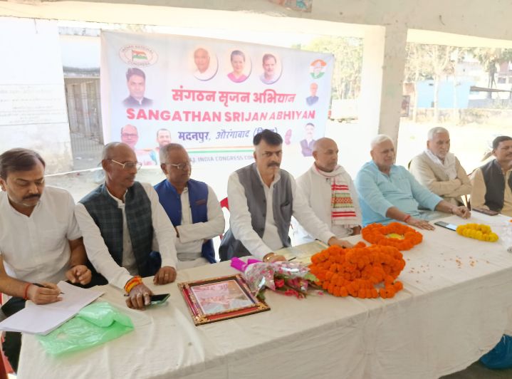 मदनपुर घर्मशाला के प्रांगण में कांग्रेस पार्टी का संगठन सृजन अभियान आयोजित किया गया । कार्यक्रम में इस अभियान के औरंगाबाद प्रभारी सह झारखंड प्रदेश कांग्रेस कमिटि के पूर्व अध्यक्ष राजेश ठाकुर की उपस्थिति में जिले से आये तमाम पार्टी के कार्यकर्ताओं से संगठन की मजबुती पर