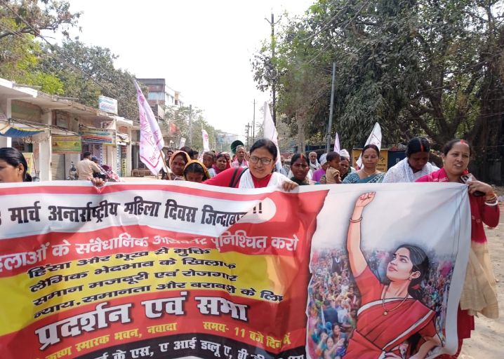 महिला दिवस के अवसर पर एकजूटता प्रदर्शित करते हुए नवादा नगर में गगन भेदी नारों के साथ विशाल रैली निकाली जो काफ़ी प्रभावकारी रहा । नवादा के भगत सिंह चौक पर महिलाओं को संवैधानिक प्रदत्त अधिकार ,लैंगिक भेदभाव के खिलाफ ,हिंसा और भूख से मुक्ति , महिलाओं के इज्ज़त आबरू से खिलवाड़ की जड़ेमुल से समाप्ति,समान काम का समान मजदूरी एवं सभी बेरोजगारों को रोजगार की गारंटी, उचित न्याय, वाजिब हक और न्यायोचित सामाजिक समानता के लिए ही यह रैली निकाली गयी। इसके बाद सभा में नेताओं ने जमकर अपनी बात रखी। जिसका नेतृत्व एडवा के जिलाध्यक्ष एवं प्रखर बुद्धिजीवी सशक्त महिला नेत्री पुष्पा कुमारी एवं सचिव विनीता कुमारी , सीपीएम के वरिष्ठ नेता प्रो.नरेश चंद्र शर्मा , श्रमिक के चहेता शह लोकप्रिय नेता कामरेड रामरतन सिंह , सीपीएम के जिला सचिव दानी विद्यार्थी ,विजय कुमार एवं सीमा कला आदि नेताओं ने जन सभा को संबोधित किया। भगत सिंह चौक पर आयोजित सभा को संबोधित करते हुए एडवा के जिलाध्यक्ष पुष्पा कुमारी ने कहा यह अंतर्राष्ट्रीय महिला दिवस मेहनतकश महिलाओं के स्वर्ण अक्षरों में भावी इतिहास में लिए समर्पित है। आज हमें जो भी अधिकार मिला है,वह संघर्ष के उपरांत हीं मिला है। संघर्ष ही असली जीवन है।आज ये भाजपा और आरएसएस की सरकार देश को सांप्रदायिक कारपोरेट के हाथों सौंपना चाह रही है। वर्ष 1908 में न्यूयार्क के कपड़े सिलने वाली महिला मजदूरों ने संघर्ष किया और काम के लिए ८ घंटे,मजदूरी बढ़ाने ,वोट का अधिकार आदि जीत हासिल किया। आज मोदी सरकार धीरे – धीरे संविधान प्रदत्त अधिकार छीनकर सारी सुविधाओं से बंचित करने की घृणित अमानुषिक प्रयास में एडिचोटी एक कर रही है। इसके खिलाफ हम सभी देशभक्तों और देशप्रेमियों को संघर्ष करने की जरूरत है। एडवा के नवादा जिला अध्यक्ष और बिहार राज्य के उपाध्यक्ष पुष्पा कुमारी कहा कि मैं आह्वान करती हूँ की आगामी 24 मार्च को दिल्ली में भाजपा के जनविरोधी नीतियों के खिलाफ आयोजित विशाल रैली में शामिल होकर अपनी भागीदारी सुनिश्चित कर आवाज को बुलंद करे। महिलाओं का सशक्तिकरण करना ही असली अंतर्राष्ट्रीय महिला दिवस मनाने की प्राथमिकता एवं सार्थिकता है। हम होंगे कामयाब जैसे राष्ट्रीय लोक गीत के साथ कार्यक्रम की समाप्ति हुई।