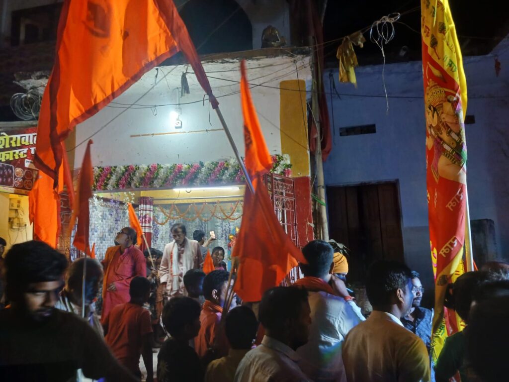 मंगला शोभा यात्रा से पूर्व हनुमान मंदिर में सामुहिक रूप से हनुमान चालिसा पाठ एवं हनुमान लला की आरती की गयी ।