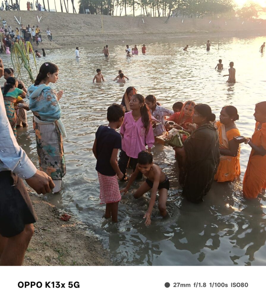 उदयीमान सूर्य को अर्द्ध देकर व्रतियों नें किया छठ का पारण एवं समाप्ति